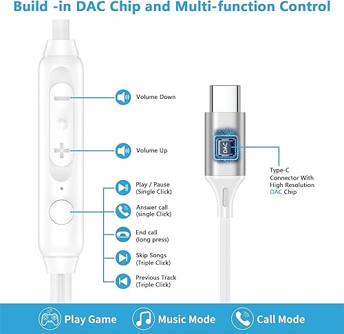 Ergonomic In-ear Headphones Wired: The usb c iphone air wired earbuds feature an ergonomic in-ear design that delivers powerful and clear sound. Equipped with a premium DAC chip, the iphone 17 ear buds wired samsung earbuds support up to 48kHz and 24-bit lossless output, ensuring high fidelity for your favorite music, videos, and movies.