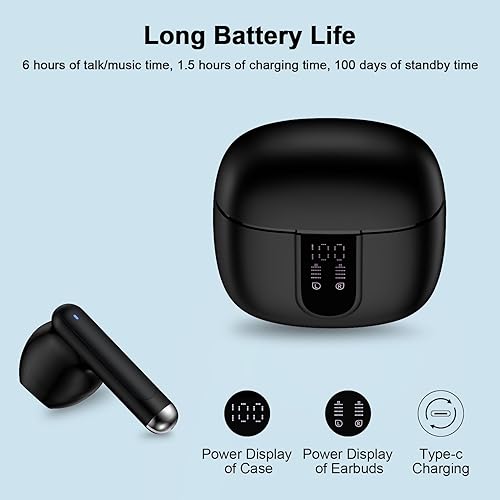 【Using Time】7 hours of music time, 5 hours of talk time, 1.5 hours of charging time, case with power display design