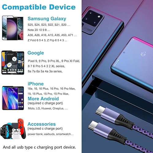 【Universal Compatibility】compatible iPhone 17, 17 Pro max, 17 Pro, 17 Air, 16e, 16, 15, Pro Max Plus series, Samsung Galaxy S25 S24 S23 S22 S21 S20 S10 S10e S9 S8 Note 20 10 9 8, Z Fold 7 6 5 4 3, Z Flip 7 6 5 4 3 2, A56 A36 A26 A55 A35 A16 A15 A54 5G A53 A71 A51 A52 A42 A32 A12 A13 A14 A03s A30, Google Pixel, LG, Moto, new android, tablet, power bank, small device like smart watch, headphone, and more usb-c port device