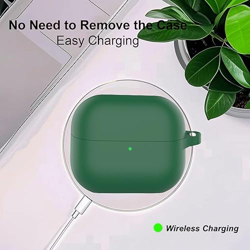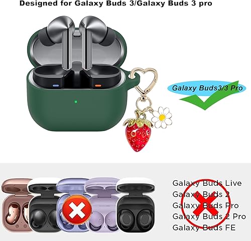 for Samsung Galaxy Buds 3 / Galaxy Buds 3 Pro Case Cover with Cute Strawberry Charm Keychain,Soft Silicone Protective Case Daisy for Samsung Galaxy Buds3 Pro Earbuds for Women Men Matcha Green(Dark Green)