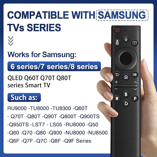 【COMPATIBLE WITH SAMSUNG TVs SERIES】Works for Samsung 6 series, 7 series, 8 series, QLED Q60T Q70T Q80T series Smart TV, such as RU9000 - TU8000 - TU8300 - Q60T - Q70T - Q80T - Q90T -Q800T - Q900TS - Q950TS - LST7 - LS05 - RU8000 - Q50 - Q60 - Q70 - Q80 - Q900 - NU8000 - NU8500 - Q6F - Q7F - Q7C - Q8F - Q9F Series