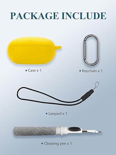 Warm Tips: Package include 1 x Silicone Case, 1 x Keychain/Carabiner,1 x Cleaning pen,1 x Lanyard(NOT INCLUDE EARBUDS). We take care of all quality-related issues with a REPLACEMENT, so if you have any problem, please contact us without hesitation.