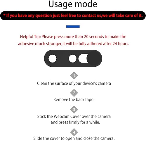 Easy to install: No complex operation, just remove the back tape and align the camera, stick the product over it and press firmly for more than 20 seconds.Adhesive will be fully adhered after 24 hours.