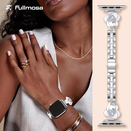 【Sparkle & Secure】Apple watch series 10 42mm band features a unique camellia-shape design, adding both elegance and uniqueness to the overall aesthetic. Each 3D camellia bloom features epoxy-secured crystals that catch light beautifully and stay firmly in place. Dress 41mm Apple watch band up or down, this is how you turn tech into a go-to accessory that feels authentically you