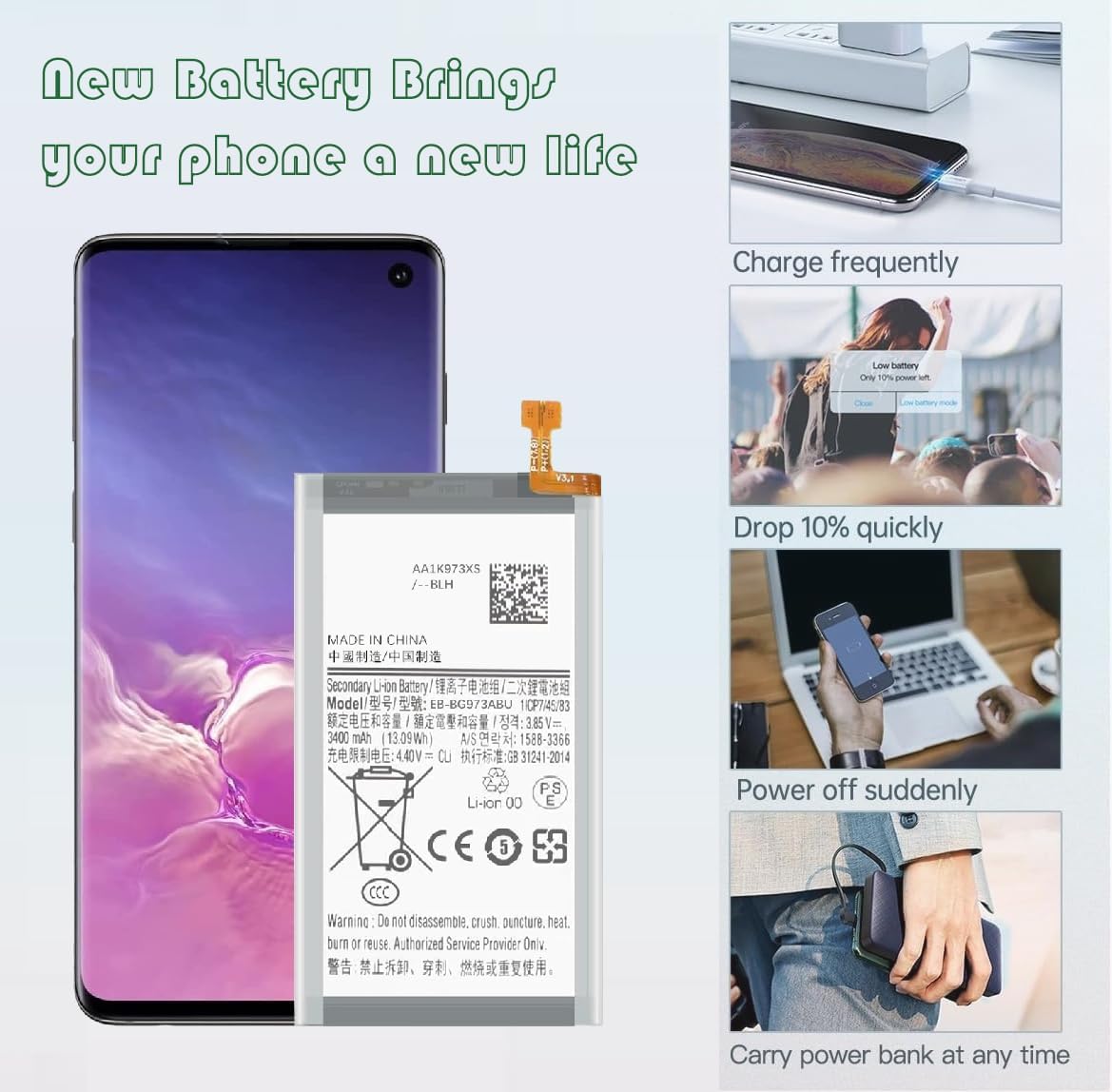 Compatible Models: This S10 Battery For Samsung Galaxy S10 4G, G973,SM-G973F, SM-G973U, SM-G973W, SM-G9730,SM-G973U1, SM-G973N, SM-G973X, SCV41, SM-G973C,EB-BG973ABU, EB-BG973ABE