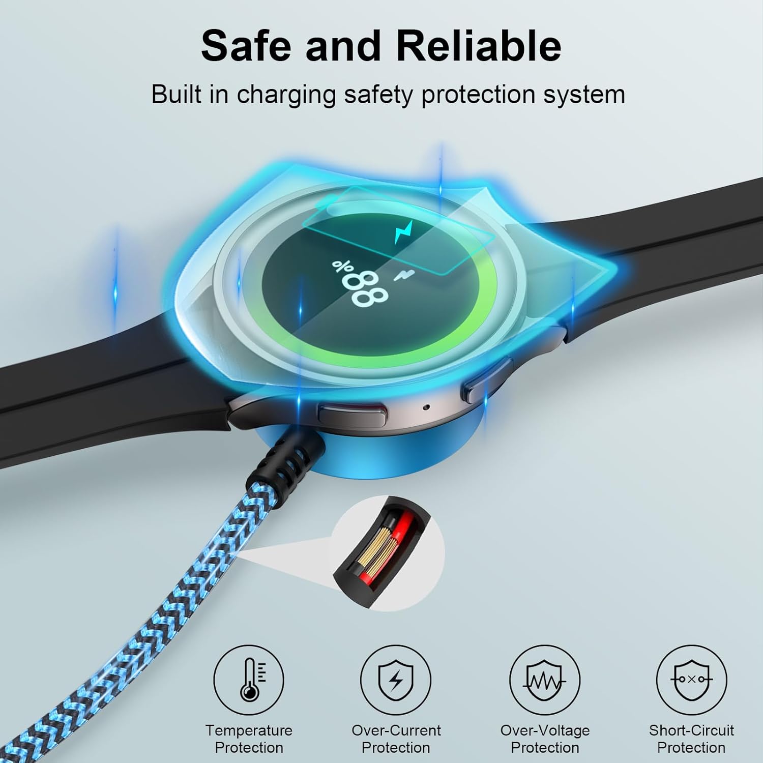 【Safe & Reliable】The Samsung Galaxy watch 7 wireless charger is equipped with a smart chip, providing automatic protection circuit function and intelligent circuit design to prevent short circuits, overheating, overcurrent, and overcharging, thus ensuring the safety of your equipment. Additionally, the compact size of the Samsung galaxy watch 8 wireless charger makes it ideal for use at home, in the office, or on the go.