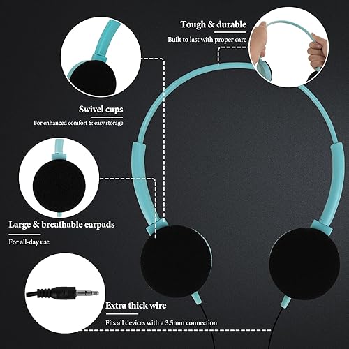 Good sound quality: Stereo headphones offer full audio clear for excellent sound quality, and a class set of headphones for students helps enhance focus learning and standardized testing experiences.