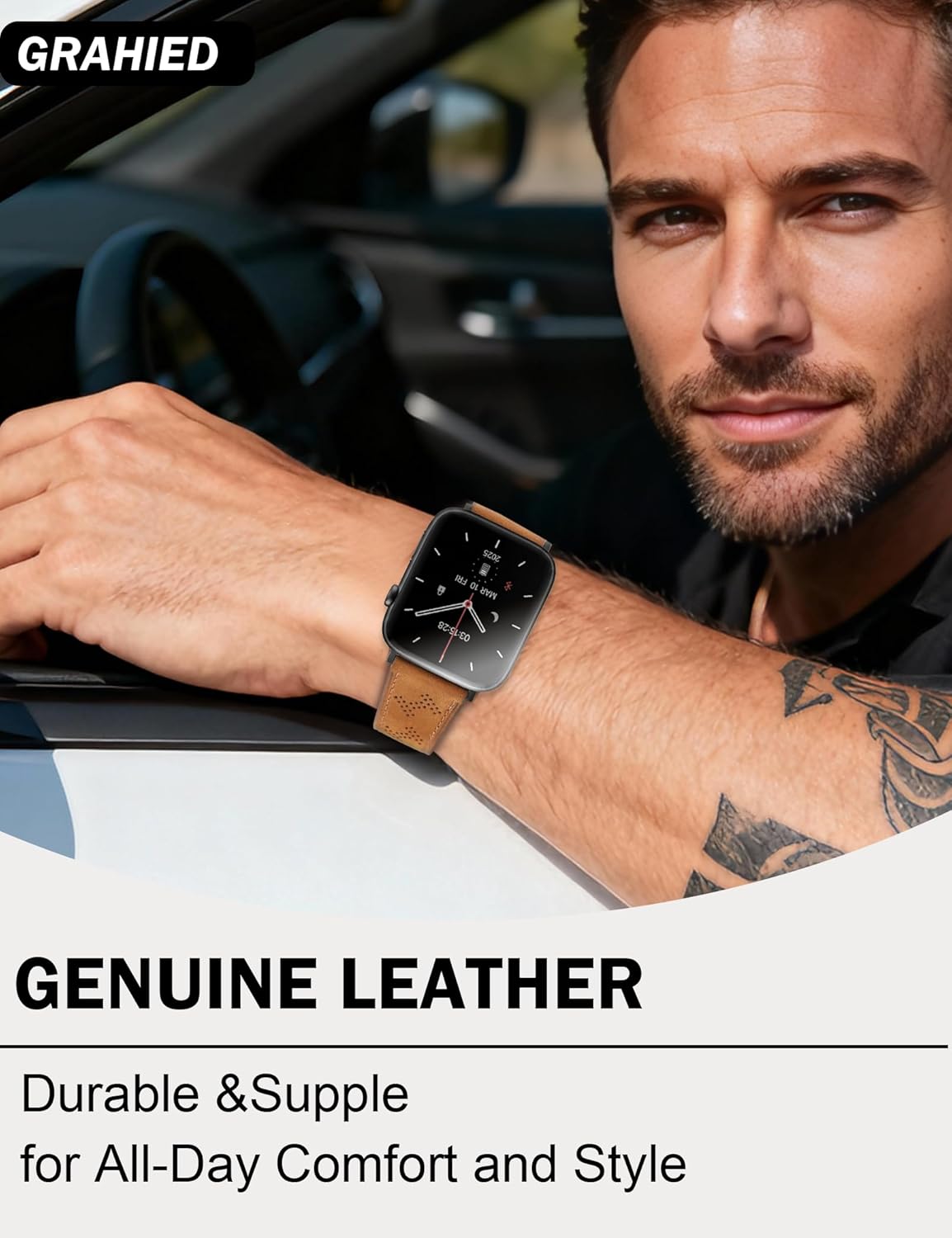 Wide Compatibility: This leather band is compatible with all Apple Watch Series 11/10/9/8/7/6/5/4/3/2/1 SE 3/2/1 Ultra 3/2/1. fitting 49mm, 46mm, 45mm, 44mm, 42mm. The adjustable band fits wrist sizes from 6.5 inches to 8.5 inches (approximately 165mm-215mm), ensuring a comfortable and secure fit for wrists of all sizes