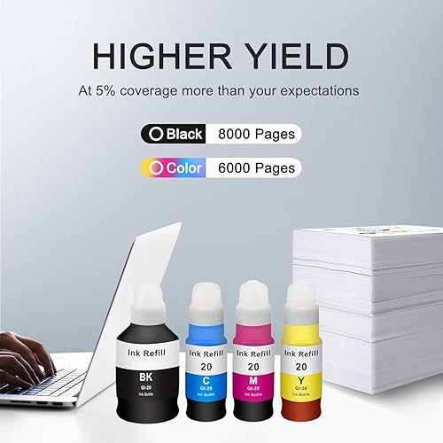Comment on "GI-20 Ink Refill Bottles Replacement for Canon gi-20 GI20 Ink Bottles Refills Kit Work with PIXMA G6020 G7020 G5020 6020 7020 5020 MegaTank Printers (Black Cyan Magenta Yellow)"