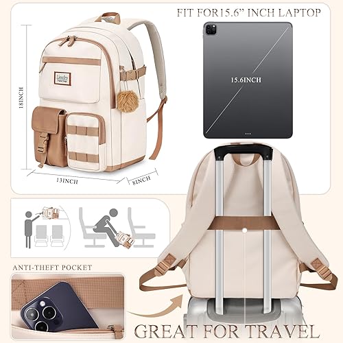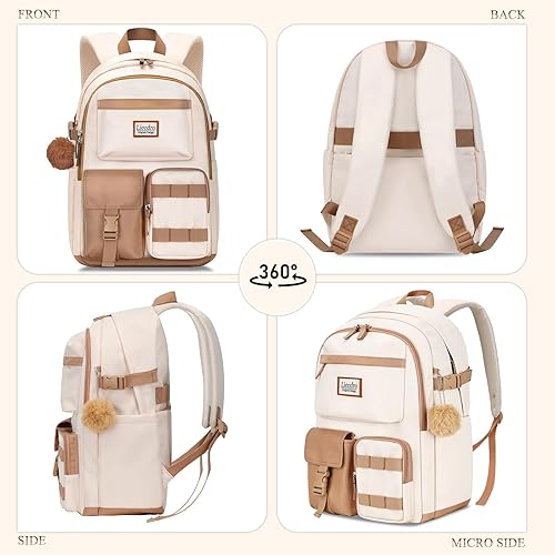Girls Backpack for School, Cute backpack for girls teens,Bookbag for middle high school college students,Water resistant school bag,bookbag for girls teens Women,mochilas escolares para niñas,Beige(D7-beige,15.6 Inch)
