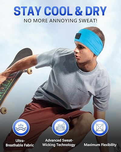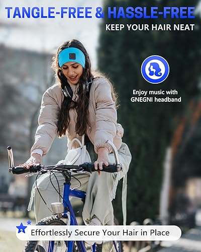 GNEGNI Sleep Headphones Bluetooth 5.4 Headband Wireless Ultra-Thin HD Stereo Speakers Headband Earphone, Unique Gifts for Women Men Sports Workout Yoga Travel Meditation(Lycra Blue)
