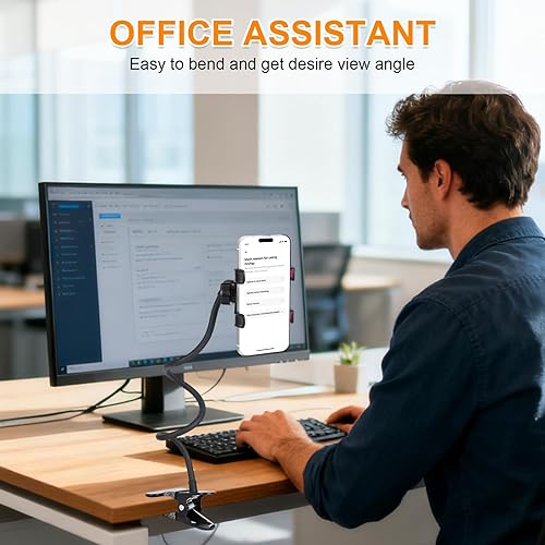 Wide-Compatibility:360 degree rotation flexible long arm adopts a universal design, featuring an adjustable clip, even with thick covers, cell phone clip with built-in soft rubber pads for better slip resistance and protection, suitable for all phone models ranging from 4.0-7.0'', such as iPhone, Samsung Galaxy, LG, etc.