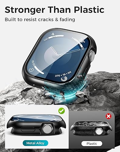 Anti-Crack & Durable: Metal case of the Apple Watch cover 45mm is made from premium aluminum alloy frame+ built-in 9H tempered glass screen protector, resists cracks and wear better than plastic. A durable upgrade for those tired of flimsy protective covers that break too soon
