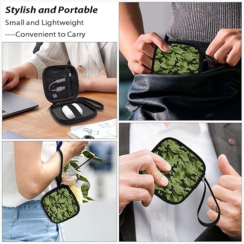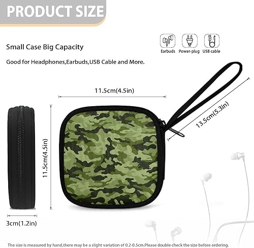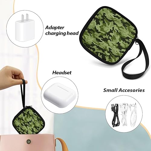 Green Camo Earbuds Pouch with Zipper Closure Shockproof Business Trip Headphone Pouch Portable Storage Bag with Waist Strap Suitable for Outdoor(Green Camouflage)