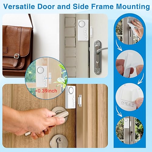 【4-in-1 Multi-Function】This door and window alarm offers 4 modes in 1 device: General Alarm for instant alerts when opened, Constant Alarm that continues for 10 seconds even after closing, Closing Reminder to notify you if left open, and Doorbell Mode that plays a “ding-dong” sound when someone enters. Easily switch modes with a single button—no complicated setup required
