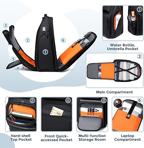 Large Capacity & Smart Organization: 45L expandable travel backpack fits 2-3 days of essentials (Dimensions: 18x12.6x9~12"). Padded 15.6/17" laptop sleeve + 12.9" iPad compartment. 3 front pockets for quick-access essentials. Airline-approved for overhead/under-seat storage.