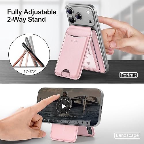 GSOIAX for MagSafe Wallet, Magnetic Wallet for Phone with Adjustable Stand Lightweight Leather Magnetic Card Holder for iPhone 17/16/15/14/13/12 Series, Not for iPhone 13/12 Mini (Black)(Light Pink)