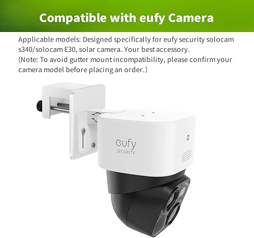 【Compatible with Eufy SoloCam S340 / E30】Specifically designed for Eufy Security SoloCam S340 and SoloCam E30 solar cameras. This premium gutter mount is your ideal camera accessory. ⚠️ Please confirm your camera model before purchasing to avoid compatibility issues