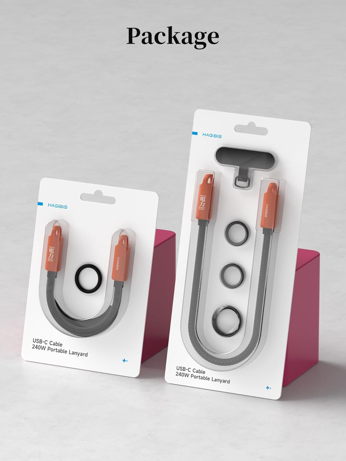 Unique Structural: Hagibis 30cm USB C to USB C cable uses FPC (Flexible Printed Circuit) inside which makes the cable more durable and flexible than other similar items in the market. It is not only a USB-C cable but also a phone lanyard, wear it on your wrist thwn you go out to prevent your phone from being dropped or lost