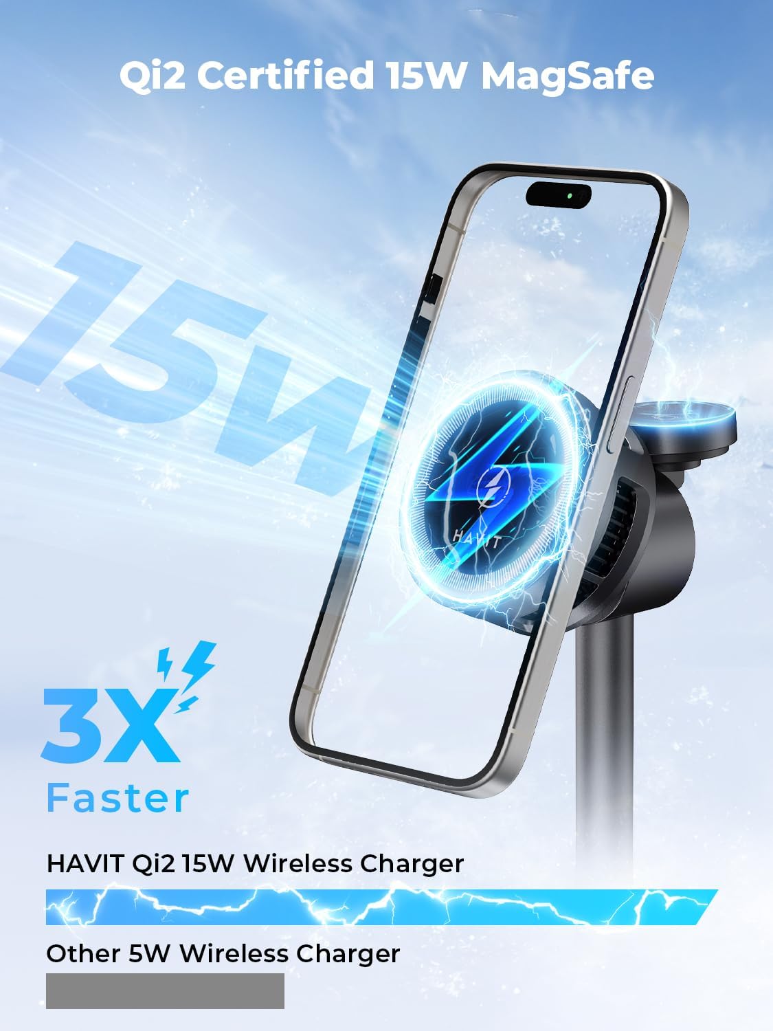 Qi2 Certified 15W Fast Wireless Charging – Speed Meets Battery Protection: Supporting the latest Qi2 standard, this wireless charger delivers ultra-fast 15W charging for compatible smartphones while intelligently protecting your battery's lifespan for long-term use