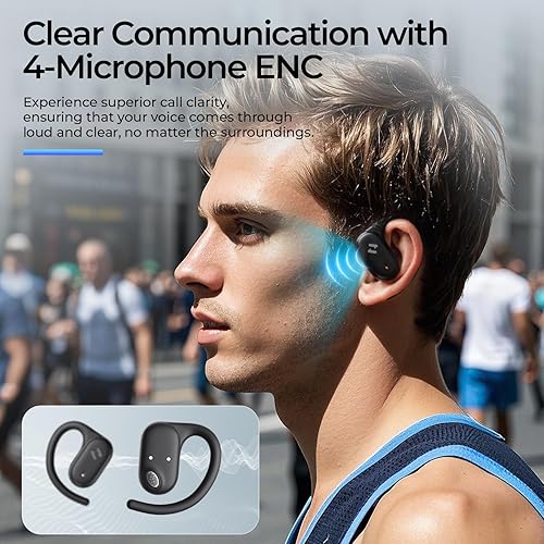 {OWS915} Open-Ear Design, Ultra-Comfortable and Secure Fit: Experience unparalleled comfort with our Open-Ear Headphones, designed with a lightweight fit (weighing only 7.9 grams) and soft TPU materials, ensuring a gentle embrace on your ears for hours of listening pleasure without fatigue while ensuring a stable fit