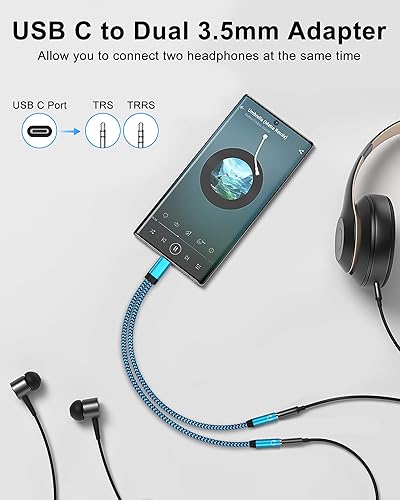 【USB C Audio Sharing Splitter】 The USB C to headphone jack adapter can convert the signal from one usb type c port into two 3.5mm female aux audio port, allowing you and a friend to enjoy movies, music, or games together without sharing a single earbud. Perfect for flights, road trips, and family travel.