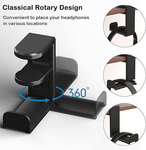 Headphone Stand - Adjustable Clamp-on Headphone Holder, Under Desk Gaming Headphone Holder Mount Hook with Rotating Clamp