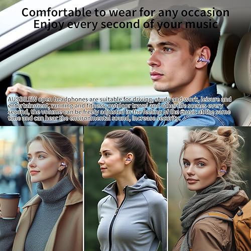 Bone conduction headphones air conduction stereo:AUSBILEW Open earbuds clip onto your ears and directional audio transmission technology delivers clear audio and deep bass, open headphones allow you to enjoy rich, immersive sound. You can also hear the ambient sounds around you, so you can always be aware of your surroundings while driving, exercising outdoors or running for fitness, comfortably