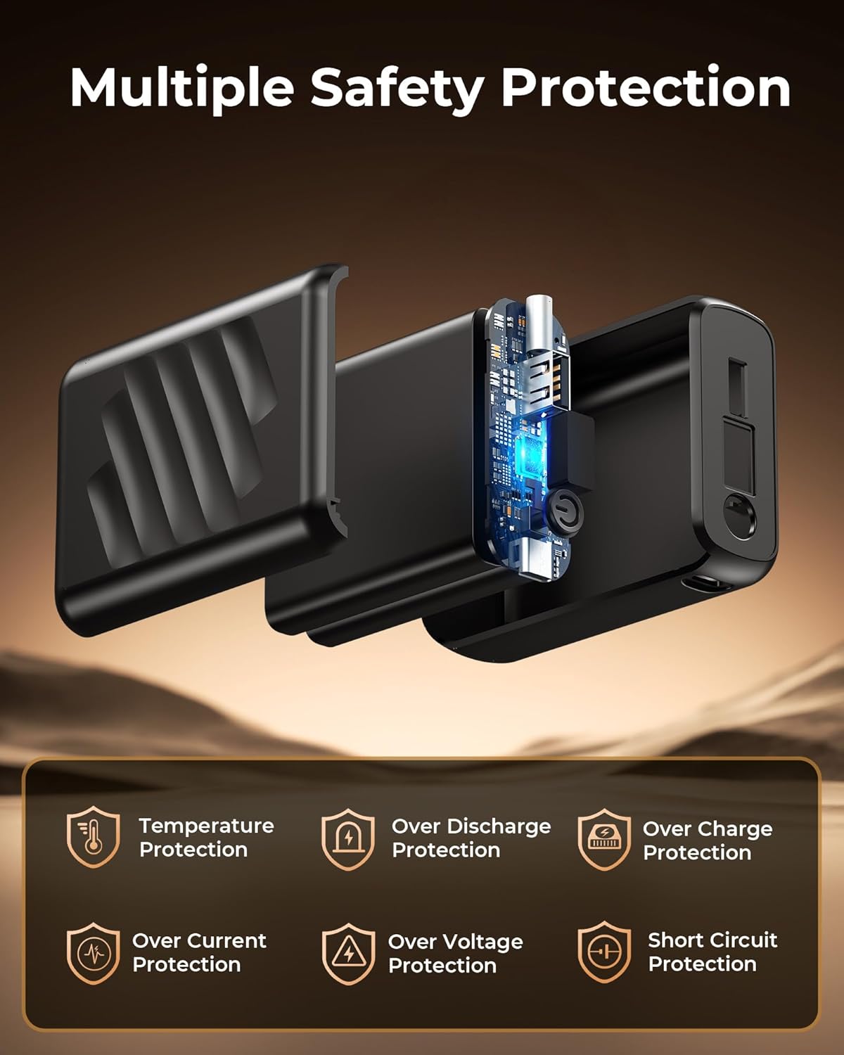 Smart LED Power Display:The power bank for heated vest features an advanced smart LED display, showing the remaining power from 1% to 100% accurately. The hidden display activates only when connected, lighting up to indicate battery status. When not in use, the battery pack for heated vest automatically enters sleep mode to prevent power waste, ensuring you stay warm without unnecessary energy consumption. This intelligent design makes it a reliable and efficient choice for your heated vest.