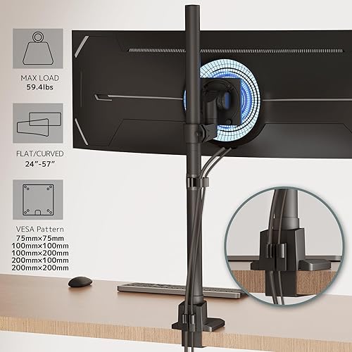 Supports 57'' Ultrawide Monitors: Designed for ultrawide screens, this ultrawide monitor mount securely supports 24–57 inch flat or curved monitors weighing up to 59.4 lbs, perfect for ultrawide and gaming setups