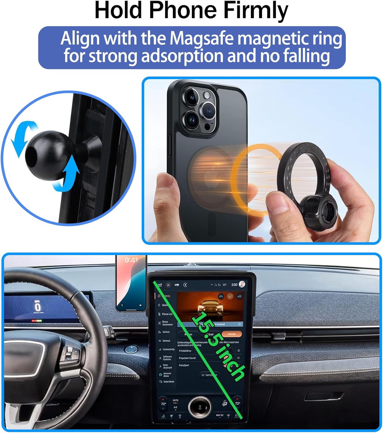 Exclusive Custom Design for Ford Mustang: The magnetic phone holder is custom fit for 2021-2025 Ford Mustang Mach-E 15.5-Inch Touchscreen. Please verify screen size before purchas!