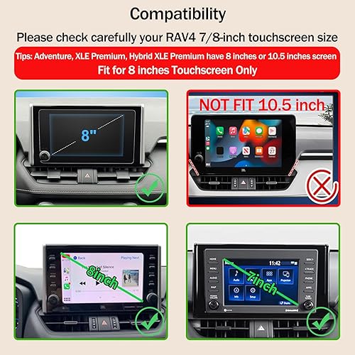 Exclusive Custom Design for Toyota RAV4: The magnetic phone holder is custom fit for 2019-2025 Toyota RAV4 (LE/ SE/ XLE/ XLE Premium/ Adventure), 2019-2025 Toyota RAV4 Hybrid (LE/ SE/ XLE/ XLE Premium/ Woodland Edition) 7/8-Inch Touchscreen. [NOT FIT: RAV4 Hybrid XSE, RAV4 limited Hybord, 10.5-inch and 12.3-inch screen]. TIPS: Adventure, XLE Premium, Hybrid XLE Premium have 8 inches or 10.5 inches screen. Please verify screen size before purchas!