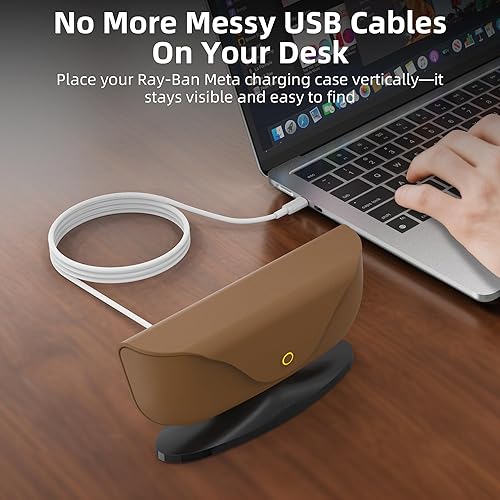 ✔Charge with One Hand: The charging case can be charged with just one hand. The powerful magnetic USB-C port securely attaches to the magnetic base. The LED indicator on the charging case remains visible even when it's upright during charging. It also shows charging status of the Ray-Ban Meta charging case via the LED light on the back of the charging dock. No need to plug and unplug, put it on and charge. Just press and remove it once fully charged.
