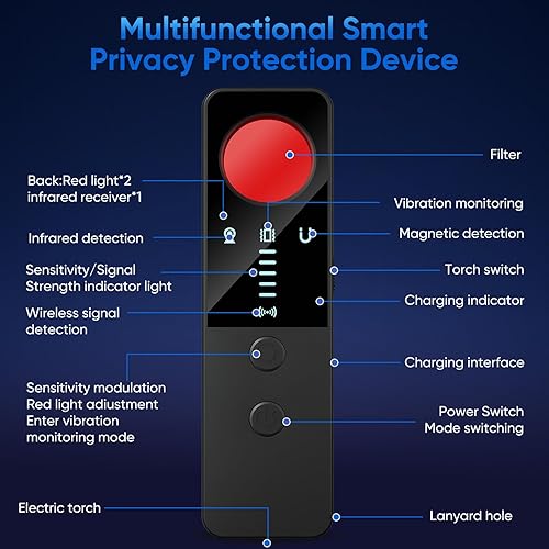 Advanced AI tech: Designed by information security experts and made by leading security firms. It accurately detects hidden cameras, GPS trackers, listening devices, mics, etc.