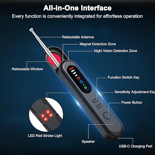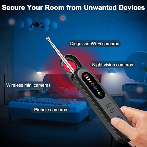 【Universal Device Detector for Every Setting】 Our camera detector spy camera finder combines a listening device detector, camera finder detector, tracker detector, camera scanner detector, and recording device detector—all in one compact unit. The hidden bug and camera detector can safeguard your home and office, ensur privacy in hotels and rental properties, protect your vehicle from unauthorized tracking, or securing sensitive discussions in public spaces.