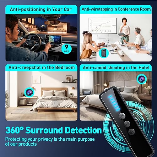 【Privacy and Security】: With fast one-hour charging, each full charge provides up to 25 hours of usage and 25 days of standby time, eliminating the need for battery replacements. This product uses the newest find technique,has a variety of detection modes. Perfectly for home, office, travel, car and etc. Also recommended to find bedrooms, bathrooms, rooms, flower pots, wall clocks, mirrors, light bulbs, speakers, etc. hidden devices. It provides reliable protection wherever you are.