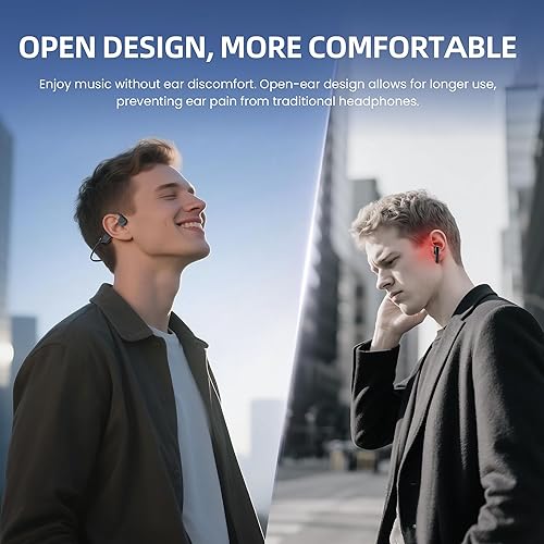 【Open-Ear Comfort】Enjoy all-day comfort with HIFI WALKER open ear headphones that keep your ears open and pressure-free. The ergonomic bone conduction design ensures a secure fit without blocking your ear canals, letting you stay aware of your environment while listening to music.