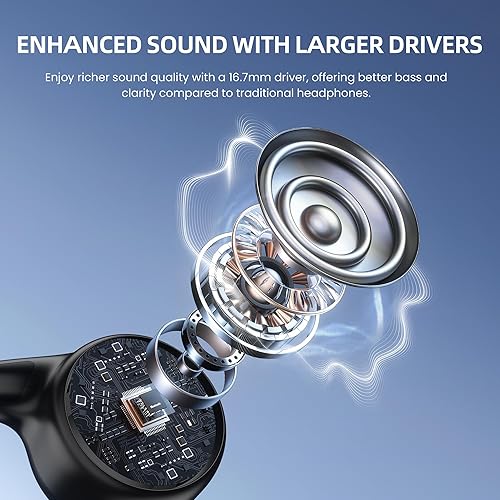 【Powerful HiFi Sound】Equipped with a 16.7mm dynamic driver, these wireless headphones deliver immersive HiFi stereo audio with rich detail and clear layers. From high-energy workout playlists to calls on the go, enjoy premium sound clarity.