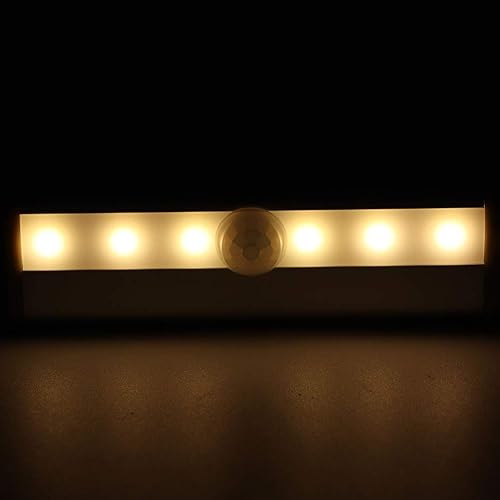 Hilitand 6 LEDs Infrared Human Body Induction Lamp Cabinet Motion Sensor Light, Automatic Standby, for Cupboard Wardrobe (Warm White)