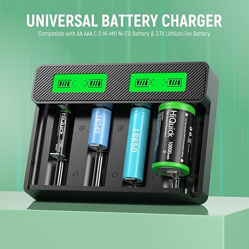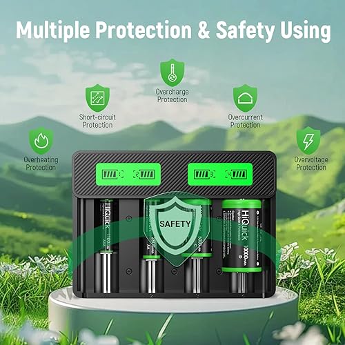 UL Safety Certified: HiQuick smart rechargeable AA/AAA/C/D/18650 battery charger has smart chip, accurately controls the charging process throughout the whole process, does not overcharge when fully charged, and stops charging for non-rechargeable batteries