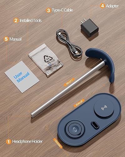 【What You Get】 3-in-1 Headphone Stand with Wireless Charger, Wall Adatper, USB-C Cable, User Manual; come in 1 nice white paper package box for gift; It is an aesthetic desk decor and an ideal gift for family, friends, and yourself; 1-year warranty, 7*24h service, lifetime technical support; If any problem, please feel free to contact HiWe via the Amazon message center