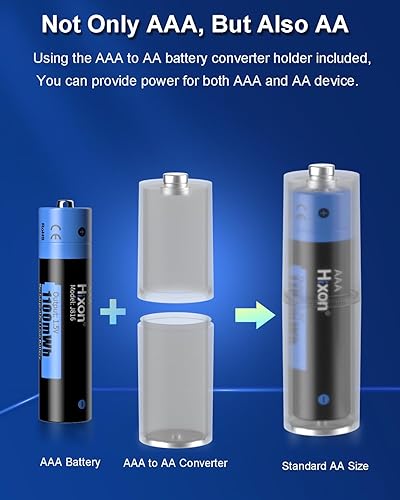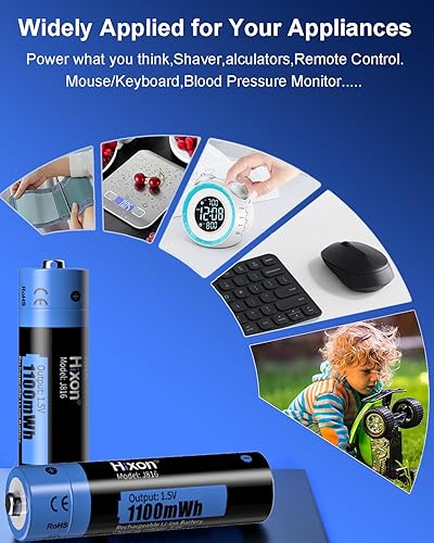 Rechargeable Lithium AA: Hixon 1.5V Rechargeable Lithium AA Batteries have 1.5V output voltage,the max discharge current is 3A,these high power rechargeable AA batteries deliver a higher voltage than NiMH batteries, making them ideal for high-power demended electronic devices.