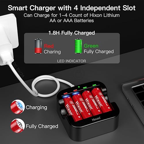 [Independent Charging Slot] - This smart battery charger can charge 1 to 4 Hixon J818 AA and J816 AAA li-ion batteries at the same time(Note:Only for Hixon lithium aa / aaa battery ,donot charge other brand or type battery)