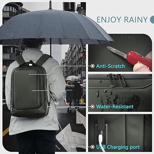 hk Laptop Backpack for Men with USB Charging Port Water-Resistant for 17.3 Inch Computer Bag Durable High-Tech Daypack Casual Backpack for Business Work College Weekender Travel- Black(Green,15.6 inch)