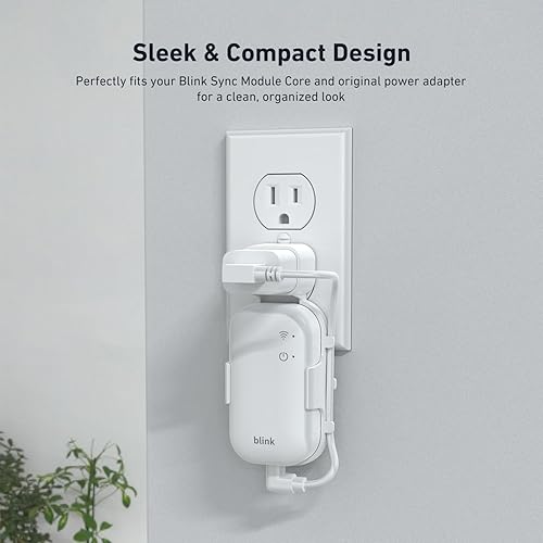 SECURE SYNC MODULE HOLDER: Specially designed to hold your Blink Sync Module Core and its original power adapter on any standard wall outlet. Keeps your device stable and organized while maintaining optimal connectivity. (Sync Module not included.)