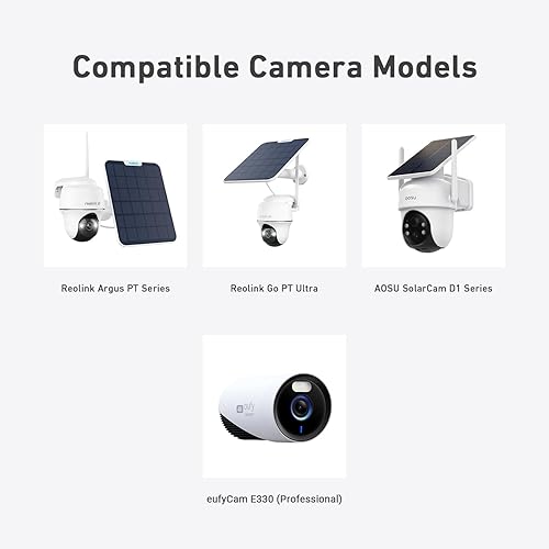 Compatible Devices: Reolink Argus PT series cameras, Reolink Go PT Ultra camera, AOSU SolarCam D1 series cameras, AOSU Solar Camera C9 series cameras, and EufyCam E330 (Professional)
