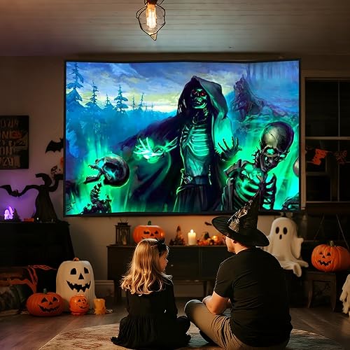 【Wide application range】Halloween projector hologram not just for halloween use! Rear projection screen can be used for Christmas projection screens, can also be used both indoors and outdoors for projecting halloween videos home theater, gaming camping, backyard cinemas ect