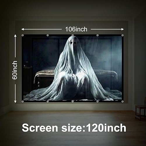 【Hologram projector screen size】100 inch projector screen size 50 "x 89" makes the halloween screen suitable for most window sizes, enhancing the visual depth and realism of projection. Its size is perfect for backyard movie nights, allowing a broad audience to enjoy the show from various angles and distances