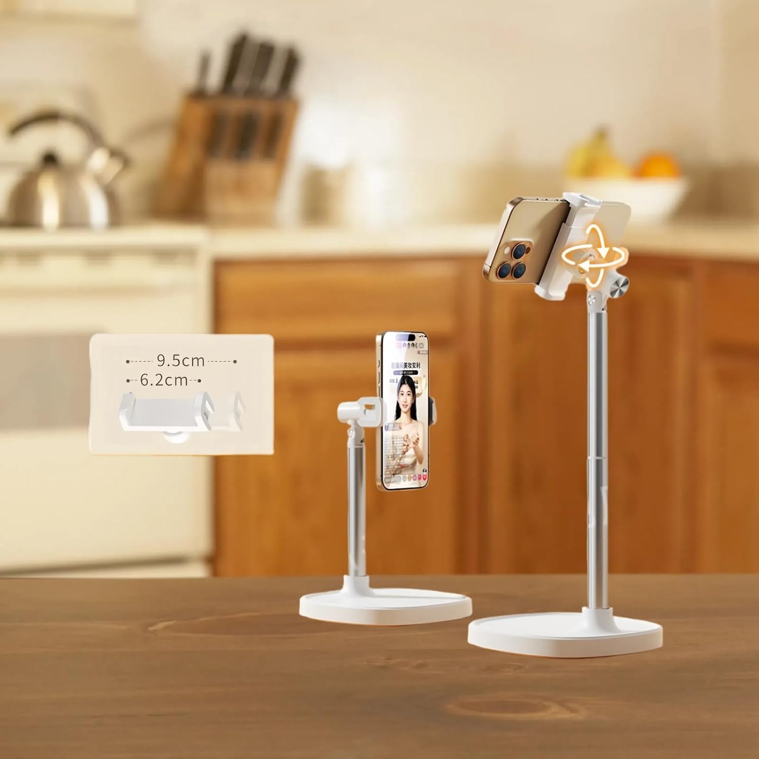 [Flexible Adjustment & 360°Rotation]:Easily adjust height and angle with the flexible gooseneck design.Enjoy 360°rotation for landscape/portrait mode switching—perfect for live streaming,video calls,or hands - free video watching.