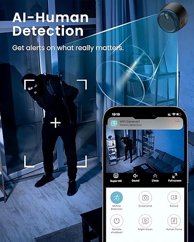 HsiaoPun 4K HD Small Home Security Camera, Rechargeable 1200mAh Battery, Human Detection, Night Vision, WiFi Indoor/Outdoor, Motion Alerts